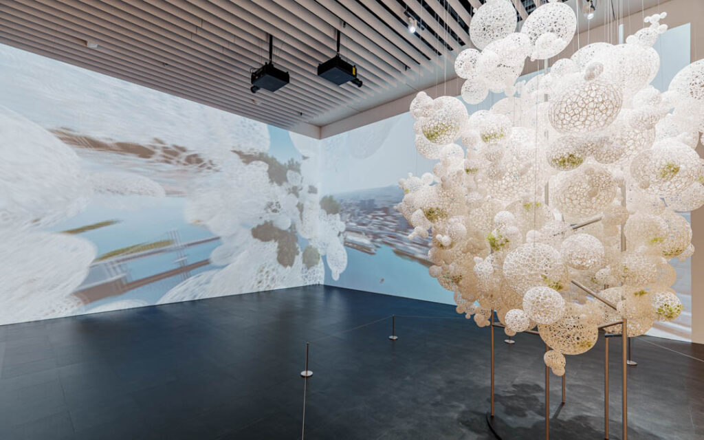 最後のセクションでは、球体群による未来都市構想模型や映像が展開される。